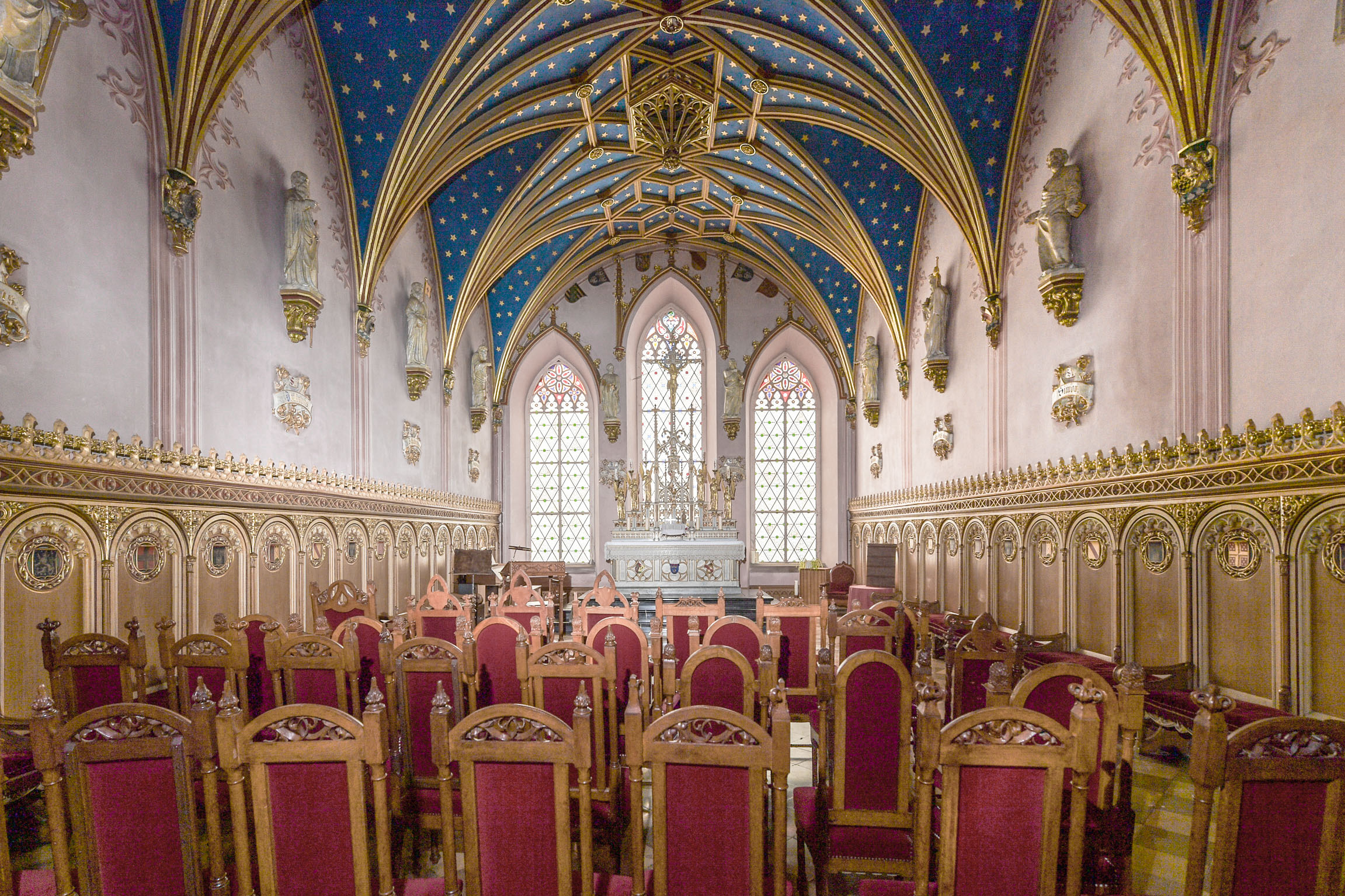 Im Schloss befindet sich eine wunderschöne, hauseigene Kapelle, in der gelegentlich evangelische und katholische Gottesdienste stattfinden. Darüber hinaus steht sie den Rehabilitanden als Ort der Ruhe und Besinnung offen.